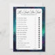 Apresentando "Ele disse, ela disse", o jogo de chá de panela perfeito que irá adicionar um toque de entusiasmo e riso à sua celebração. Projetado para testar seu conhecimento da noiva e do noivo, este jogo apresenta uma lista de perguntas personalizadas que manterão seus convidados engajados e entretidos. Prepare-se para adivinhar as respostas e competir pelo título de campeão do chá de panela final! "Ele disse, ela disse" mostra um centro branco espantoso, fornecendo uma canvas limpa e elegante para o jogo. Ao redor deste fundo branco pristine é uma fronteira impressionante inspirada pela beleza mesmerisória das luzes do norte. As cores vivas e o brilho etéreo da borda das luzes nortes acrescentam um toque de magia e encanto ao jogo, fazer-o um banquete visual para os olhos. O mesmo design de fronteira cativante é apresentado na parte de trás do jogo, garantindo um olhar coeso e visualmente atraente. Dentro do jogo, você vai descobrir uma coleção de perguntas personalizáveis que mergulham na vida, nos caprichos e no relacionamento da noiva e do noivo. Seus hóspedes colocarão seu conhecimento à prova enquanto tentam adivinhar se uma declaração específica foi dita pela noiva ou pelo noivo. Para fazer seus palpites, eles podem rodar o símbolo do vestido de noiva se eles acreditam que foi a noiva ou o símbolo do tux se eles pensam que foi o noivo. A emoção intensifica-se à medida que os convidados competem para adivinhar as respostas mais corretas, criando uma atmosfera cheia de risos e competição amigável. Na parte inferior do jogo, há um espaço dedicado para os convidados escreverem seus nomes e acompanharem suas pontuações. Esse recurso interativo adiciona um senso de organização e permite que os participantes acompanhem seu progresso ao longo do jogo. Os convidados gostarão de comparar as suas respostas e de registrar as suas pontuações, promovendo uma experiência viva e envolvente para todos os envolvidos. "Ele disse, ela disse" é um jogo versátil adequado para chás de panela de todos os tamanhos e estilos. Quer você esteja hospedando uma reunião íntima ou uma grande celebração, este jogo certamente vai entreter e deliciar convidados de todas as idades. Então reúna seus amigos e família, teste seu conhecimento, e mergulhe na magia de "Ele disse, ela disse" - o último jogo de chá de panela que criará memórias queridas para a noiva e seus entes queridos.
