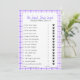 Apresentando "Ele disse, ela disse", o jogo de chá de panela que trará alegria, riso e competição amigável para sua celebração. Este jogo personalizado foi concebido para pôr à prova o conhecimento da noiva e do noivo dos seus convidados, criando uma experiência envolvente e inesquecível para todos os envolvidos. "Ele disse, ela disse" apresenta uma lista de perguntas personalizáveis que desafiarão seus convidados a adivinhar quem disse o quê. À medida que cada pergunta é apresentada, os participantes devem determinar se a declaração foi feita pela noiva ou pelo noivo. Para indicar sua escolha, os convidados circularão o elegante vestido de noiva simbolizando a noiva ou o sofisticado smoking que representa o noivo. É um jogo interativo que encoraja conversas vivas e debates amigáveis entre amigos e familiares. Esta versão de "Ele disse, ela disse" mostra um fundo branco pristino com uma captivadora fronteira de xadrez roxa. O design adiciona um toque de elegância e um pop de cor ao seu chá de panela, complementando perfeitamente a atmosfera celebratória da ocasião. A mesma fronteira de xadrez de na moda também é apresentada na parte de trás do jogo, criando uma experiência coesa e visualmente atraente para os seus convidados. Os cartões de jogo incluem um espaço dedicado na parte inferior onde os hóspedes podem escrever os seus nomes e controlar o número de respostas corretas. Isso não só promove competição amigável, como também permite identificar o campeão final "Ele disse, ela disse" no final do jogo, acrescentando uma camada extra de entusiasmo e antecipação ao evento. Ao explorar as questões personalizadas, prepare-se para desvendar anedotas engraçadas, momentos animadores, e surpresas que refletem a dinâmica única e experiências compartilhadas do casal. "Ele disse, ela disse" não só enterra, mas também fortalece o vínculo entre convidados e a dupla a ser feita em breve, criando memórias duradouras que serão apreciadas pelos próximos anos. Transforme seu chá de panela em uma celebração inesquecível cheia de risos e conexões. Com "Ele disse, ela disse", você criará uma atmosfera de diversão e camaradagem enquanto celebra o amor entre noiva e noivo. Abrace a beleza da fronteira da xadrez roxa e deixe o entusiasmo se desenrolar enquanto você embarca em uma experiência memorável de chá de panela!