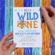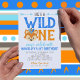 Ele é um Convites de festas de aniversários WILD ONE Double Sided (Dois lados) (inclui envelopes). Inclui cores: azul, castanho, azul-bebê, laranja e branco