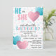 Convide seus amigos e entes queridos para comemorar seu bebê em breve e a mãe a ser convidada para o chá de fraldas de Revelação de Gênero inspirado por um Dia de os namorados fofo.
