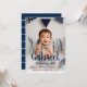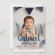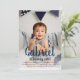 Ele está virando um! Celebre a ocasião especial com esses convites de festas de aniversários simplesmente na moda que apresentam uma foto do seu homenzinho com o texto da camada azul do marinho moderno. O nome do bebê e o ano de aniversário são destacados em um roteiro ousado, escrito à mão, juntamente com todos os importantes detalhes do partido. Um padrão de listras brancas e bonitas horizontais veste a parte traseira da placa.