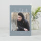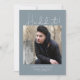 Cartão com fotos de convite para festas de formatura moderno e elegante, com texto tipográfico escrito à mão que diz "Ele fez!" no topo. Você pode adicionar as informações da parte traseira do cartão. Excelente para um segundo grau ou formando universitário masculino. A cor de fundo pode ser alterada para sua preferência.