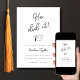 Celebre o marco do formando com este convite festa de formatura moderno e minimalista! Apresentando um elegante design preto-e-branco com um roteiro de na moda com "Ele fez" e um boné de formatura desenhado à mão, este convite é perfeito para anunciar sua celebração especial. Personalize facilmente com o nome do formando, o ano da classe, os detalhes do evento e uma imagem do formando para criar uma manutenção única. Seja para uma reunião casual ou um evento formal, este design eterno é uma forma sofisticada de honrar sua conquista. 🎓 ✨