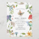 Um tema de chá de panela floral de flor silvestre perfeito para uma noiva? Este belo floral silvestre apresenta um belo buquê de flores silvestres em vermelho, amarelo, esbranquiçado e azul, borboletas de flores silvestres de aquarela sobre fundo de pêssego. Lá atrás, você encontra um padrão floral fofo