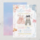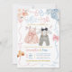 Sexo Rosa E Azul De Arco Revise Convite, Ele Ou Ela Roupa Bebê Revelação De Sexo, Coqueta Azul Cor-De-Água Azul Fita Floral Folha Revelação De Bebê