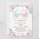 Aquarelas florais elegantes, cor-de-rosa-boho e carruagem azul com temas de gênero revelam convite para o chá de fraldas. Não se esqueça de descobrir a coleção de cheios.