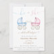 Dois carrinhos anunciam sua festa de gênero revelando aos seus convidados... nesse Convite de festas de Revolução do Que Será o Gênero? Um cilindro cor-de-rosa é exibido virado para um cilindro azul nesta imagem simples, mas impressionante. Fonte de script elegante em rosa e azul. Personalize com seus nomes, local, data e detalhes de RSVP.