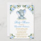 Convites Elefante chá de fraldas Aquarela Azul Floral Doura