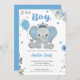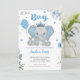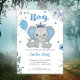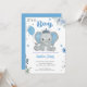 Azul bonito é um convite para chá de fraldas de menino. Se está planejando uma festa de chá de fraldas de elefante, então este convite é perfeito!