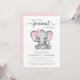 Uma menina fofa casal um convite para chá com "A Sweet Little Peanut Is On Her Way" escrito em uma mistura de tipografia moderna de cinza mole e um roteiro de na moda, e uma aquarela rosa pastel de um elefante bebê. Personalize os nomes da mãe e do pai e os detalhes do aspersão do bebê em uma simples tipografia de cinzas.