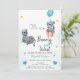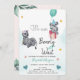 Os convites apresentam um elefante e uma zebra aguados com listras de aquarela pastel.