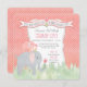 Estes convites de formato quadrado com cantos arredondados são um destaque! Mão pintada em aquarela pela artista Audrey Jeanne Roberts, esta adorável menina chá de fraldas ajustado um tema de elefante. O fundo é um coral cor-de-rosa pintado manualmente com bolinhas cor-de-rosa mais profundas. Um quadro em forma de colchete em branco com uma borda de cinza contém o trabalho de arte e o layout de texto de tipografia bonitos. Um belo banner no topo tem um estilo tipográfico escrito manualmente texto que diz, "Você é convidado para um Chá de fraldas." Outra arte manuscrita lê: "É uma Menina!" e "RSVP para:" junto com "Registro." Você simplesmente preenche as informações de seu partido nos campos de modelo. Há um conjunto completo de produtos correspondentes para convites, decoração de quarto de bebê e artigos de festas de papel chá de fraldas e decoração. Copyright todos os direitos reservados.