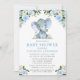 Convites Elefante de Chá de fraldas Floral Azul de Aquarela