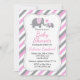 Convites Elefante de Stripes Rosa e Cinza | CHÁ DE FRALDAS