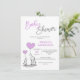 Púrpura, lavanda, cinza (cinza), branca e pastel moderna, com convites para duches brancos de bebê. Mamãe (mãe) e elefante bebê com balões de coração de lavanda leve. Trendy pincel com letras de script. Barato, mas não de aparência barata! Perfeito para qualquer garoto ou garota, neutro em gênero, revelador, festa do tema do chá de elefantes unísex. Estas placas de modelo de convite podem ser editadas com suas informações. Obtenha adesivos favoritos.