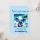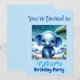 Uma cena encantadora com um adorável elefante azul espelhado sob um céu estrelado cintilante para um convite de festa de aniversário sonhador e hipnótico. Personalize com o nome do seu filho.