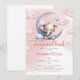 O tema "Nós te amamos até a lua e de volta" para um convite de chá de bebê de menina é absolutamente adorável. O elefante fofo sobre a lua adiciona um toque caprichoso que é perfeito para celebrar a chegada de um pequeno. O tema é doce e charmoso, criando uma atmosfera calorosa e amorosa para o evento. É uma escolha encantadora para transmitir o amor e a emoção que cercam a chegada iminente da bebê.