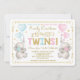 Convites Elefante Gêmeos Chá de fraldas Azul Rosa Dourada G
