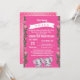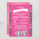 Elefantes gêmeos lindos para um chá de fraldas feminino. Fundo cor-de-rosa com lados florais e pontos cor-de-rosa e brancos atrás. Mamãe vai adorar este doce convite para seu chá de fraldas.