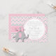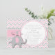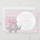 Celebrar um pequeno novo com este convite a chás de fraldas de elefantes, cor-de-rosa-na moda e cinza.