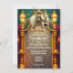 Um pano de fundo floral floral, castanho-d-água, bonito e regal, é enquadrado por pilares de ouro, cortinas de burgundy, arco de teal e ouro e espirais florais decorativas. Abaixo do elefante estão modelos brancos para sua redação personalizada e atrás um modelo para mais detalhes para hóspedes e familiares. Os tons ricos e quentes dão ao design geral uma sensação luxuosa, elegante e eterno. São ideais para celebrar Mehndi; Mehendi; Sangeet ou qualquer celebração ou casamento étnico-asiático.