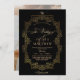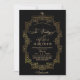 Um convite de casamento real, preto na moda e ouro moderno, com uma elegante letra manuscrita, com caracóis e um monograma da noiva e do noivo. Clássico e elegante, simples e moderno convite.