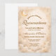 Um design celestial luminoso apresentando delicadas luas crescentes e estrelas de constelações espalhadas por um fundo de pergaminho quente. Uma moldura dourada refinada emoldura a composição, enquanto a tipografia elegante em letra cursiva cria um ponto focal gracioso digno de um marco tão significativo. Os tons suaves de marfim e champanhe dão a toda a peça um brilho radiante e atemporal. Perfeito para uma celebração de quinceañera que se sente romântica, elevada e tocada pela luz das estrelas.