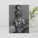 Celebre os 50 anos com estilo com este convite de aniversário preto e branco elegante. A frente apresenta um layout de foto monocromático ousado com a frase manuscrita “Cinquenta e Fabuloso”, enquanto a parte de trás exibe uma tipografia moderna e elegante que anuncia os detalhes do evento. Perfeito para celebrações de 50º aniversário sofisticadas, noites de bar ou festas de cocktails, este design minimalista combina sofisticação e estilo com uma tendência inspirada na moda.