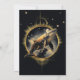 elegância cósmica, a ouro, baleia negra no mar de estrelas . Baleia majestosa saltando elegantemente através de um céu estrelado azul profundo. Seu corpo é decorado com uma borda de ouro que brilha à luz das estrelas, dando-lhe uma aura quase sobrenatural. Relação harmoniosa entre a natureza e o cosmos, em que a baleia aparece como um ser celeste - símbolo de liberdade, beleza e mistério