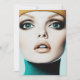Um retrato de proximidade impressionante de um modelo com olhos lacrimogêneos cativantes, acentuados pela maquiagem arrojada dos olhos, e cheios, lábios de tons neutros. O estilo de safra e cores ricas evocam a essência da moda dos anos 1960, com uma sugestão da arte moderna. Seu olhar intenso e sua expressão suave capturam o alento e a sofisticação da era.