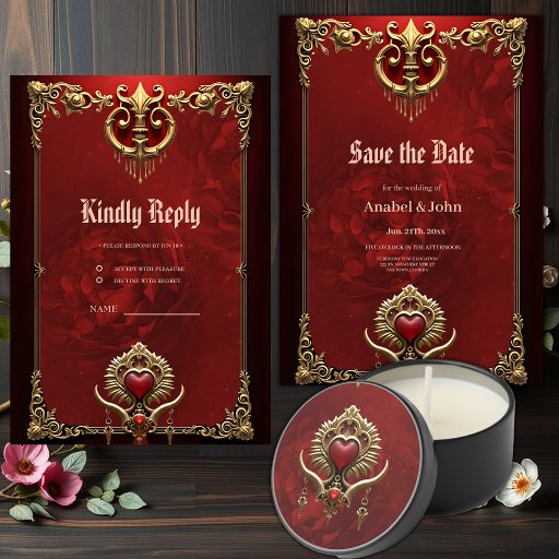 Convites Elegância em brilho vermelho com um coração orname