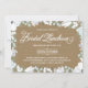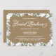 Este elegante e moderno chá de panela para um almoço nobre apresenta um lindo roteiro de caligrafia, lindas flores azuis e brancas, e um fundo no estilo papel kraft.