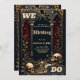 Elegância Gótica Escura. Arco espantoso apoiado por dois pilares majestosos terminaram num final escuro. Esses pilares estão luxuosamente cobertos de maria, cujas folhas verdes dão um contraste vibrante com os materiais escuros. Na base do arco estão três crânios humanos realisticamente representados cercados por mais mariposa. Estes elementos acrescentam um significado mais profundo à design e lembram a transição da vida e a força do amor que persiste mesmo além da morte.