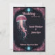 Este design de convite de casamento encantador apresenta um tema subaquático etéreo. O ponto focal é uma água-viva luminosa, rosa e translúcida, flutuando graciosamente sobre fundo escuro profundo, evocando um ambiente místico e sereno. Intriciados, decorativos como corais florescem em moldes cor-de-rosa e lacrimejantes as bordas, emprestando um sentido de elegância e capricho. No topo e no fundo, os motivos circulares ornamentados que se assemelham a orbitos brilhantes adicionam um toque de encanto celeste, complementando a paleta oceânica. A design geral transmite um sonho, de outra forma vibrável, perfeito para uma celebração romântica e única de casamento.