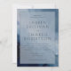 Este convite de casamento elegante apresenta um fundo sereno marmorizado em tons suaves de azul e cinza, acentuado com delicados redemoinhos dourados, criando uma atmosfera sonhadora e sofisticada. O layout é equilibrado e centralizado, com amplas margens emoldurando a tipografia limpa e serifada que destaca os nomes e detalhes do evento. Seu estilo moderno, mas atemporal, o torna perfeito para casais que buscam uma estética tranquila e graciosa para celebrar seu dia especial.