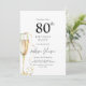 This is a modern and elegant 80th Birthday party invitation. Using a minimalist design of a flute of champagne, easily edit the text as required using the provided template and celebrate this milestone birthday in elegant style.