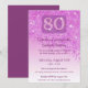 Celebrate a magnificent 80th milestone with this refined pink glitter invitation.