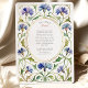Celebrate your special day with the timeless elegance of this Art Nouveau-inspired wedding invitation. This exquisite design features a beautifully hand-painted watercolor border of delicate cornflowers in lovely shades of cornflower blue, periwinkle, and soft lavender. These blooms are woven into an intricate, symmetrical frame of graceful, swirling vines and leaves, all rendered in a luminous faux gold watercolor wash. An elegant oval, accented with a delicate dashed border, perfectly showcases your wedding details against a clean white background. This invitation is ideal for a garden, countryside, or vintage-themed wedding, perfect for a couple with an appreciation for classic art and botanical beauty.