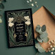 This elegant Art Nouveau wedding invitation features intricate gold detailing with a sophisticated dark floral design. The symmetrical botanical elements and flowing organic lines create a timeless, vintage aesthetic. Soft cream flowers contrast beautifully against the deep black background, adding a touch of luxury and romance. Perfect for vintage, gothic, or Art Nouveau-inspired weddings, this invitation is ideal for couples seeking an artistic and refined stationery design. Customizable text allows for a personal touch to suit any formal celebration.
