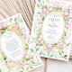 Invite your guests with a piece of art. This stunning wedding invitation captures the elegance of the Art Nouveau era, featuring graceful, hand-painted watercolor dogwood blossoms in soft shades of pink and white. The intricate floral vines, with leaves in sage and muted teal green, beautifully intertwine around a unique rectangular frame filled with a warm, antique gold watercolor wash. A central oval, delicately outlined with a faux gold dotted border, holds your personalized wedding details. The reverse side continues the sophisticated design, offering a perfectly coordinated space for "The Finer Details." This invitation is ideal for a vintage, artistic, or romantic garden wedding.
