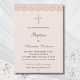 Personalize this Christian baptism invitation to create a meaningful keepsake for your child’s special, faith-filled day. The design features a cross in pearl graphics, adorned with delicate beige lace and pearl graphic details against a soft beige background. With its elegant style, vintage look, and refined combination of mocha brown colored typography and script font, this christening invite beautifully captures the sacredness of the occasion. Perfect for a baptism or simple baby dedication, this timeless design blends grace and tradition for a cherished celebration. Be sure to see the collection for matching items to complete your coordinated look.