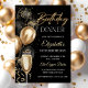 Elegant Black and Gold Balloons Birthday Dinner Invitation