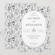 This elegant wedding invitation features a sophisticated monochromatic floral pattern with intricate botanical illustrations framing the central text. The design showcases a classic and timeless style, enhanced by clean lines and precise detailing in black against a crisp white background. The typography combines bold serif fonts for the names with lighter weights for additional details, creating a balanced and formal layout. Perfect for conveying sophistication and celebration, this invitation is ideal for couples seeking a refined and nature-inspired aesthetic for their special day.