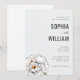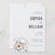 This elegant wedding invitation features a minimalist layout with clean lines and ample negative space, creating a sophisticated and modern look. The design includes a delicate floral illustration of a peony in white and yellow tones on the left side, adding a touch of natural beauty. The typography combines bold uppercase letters for the names with a cursive script for "and," enhancing the formal yet inviting tone. Perfect for couples seeking a refined and timeless aesthetic, this invitation is ideal for celebrating a special union with grace and style.