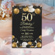 Convites Elegant Black Gold Glitter 50th Birthday Party