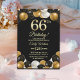 Convites Elegant Black Gold Glitter 66th Birthday Party