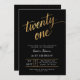 Celebrate a milestone in sophisticated style with this elegant black and gold “twenty one” birthday invitation. Featuring modern brush calligraphy in shimmering faux-gold script against a deep charcoal background, this design exudes luxury and class. Perfect for 21st birthday celebrations, formal parties, or milestone events. Personalize instantly with your own name, date, and venue details. Ideal for modern girls who want a stylish yet timeless look.