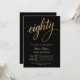 Convites Elegant Black & Gold Script Eighty 80th Birthday