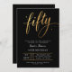 Convites Elegant Black & Gold Script Fifty 50th Birthday