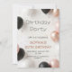 Featuring a modern black, white, and rose gold color palette with balloons, ribbons, and delicate gold confetti.